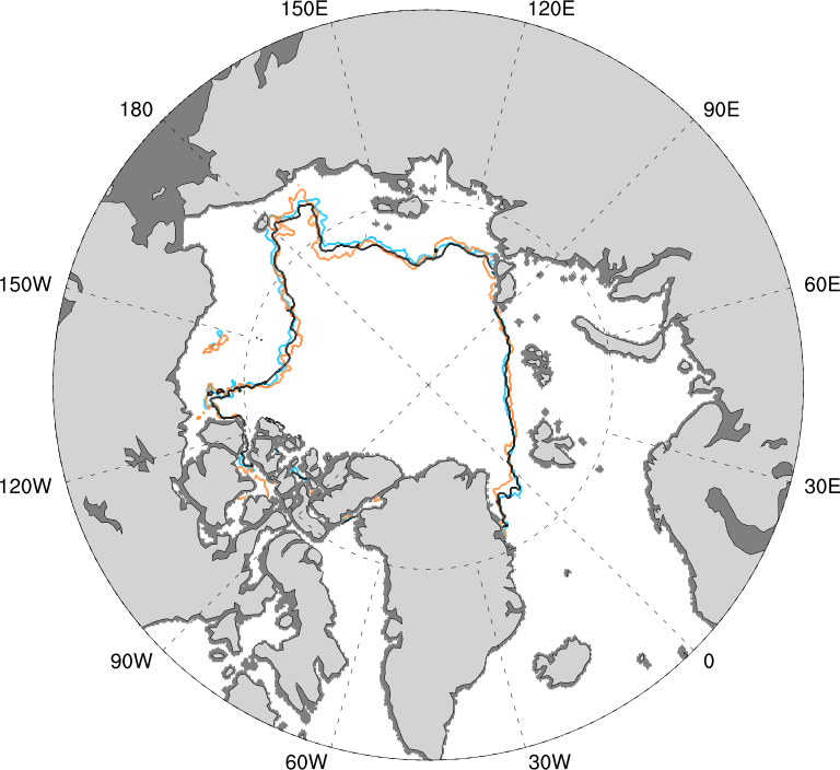 Edge nodes from observations in blue, from persistence in brown, from model in black