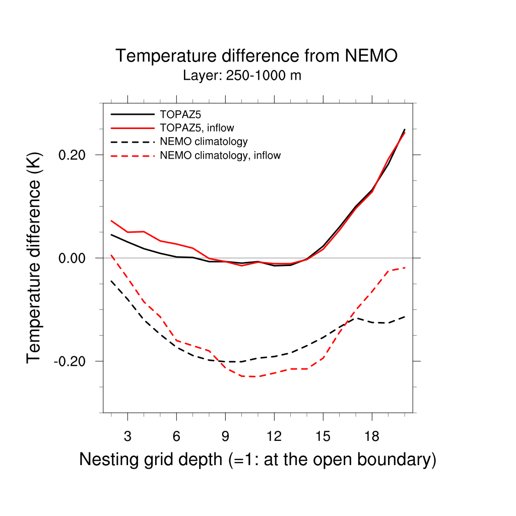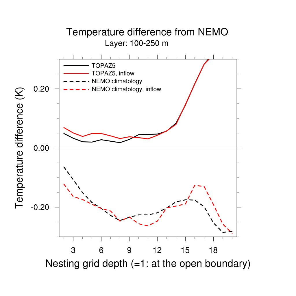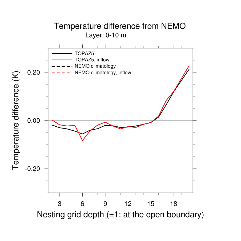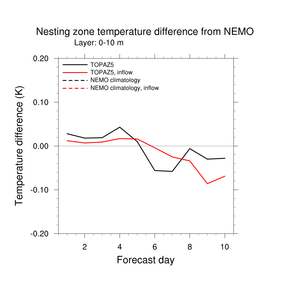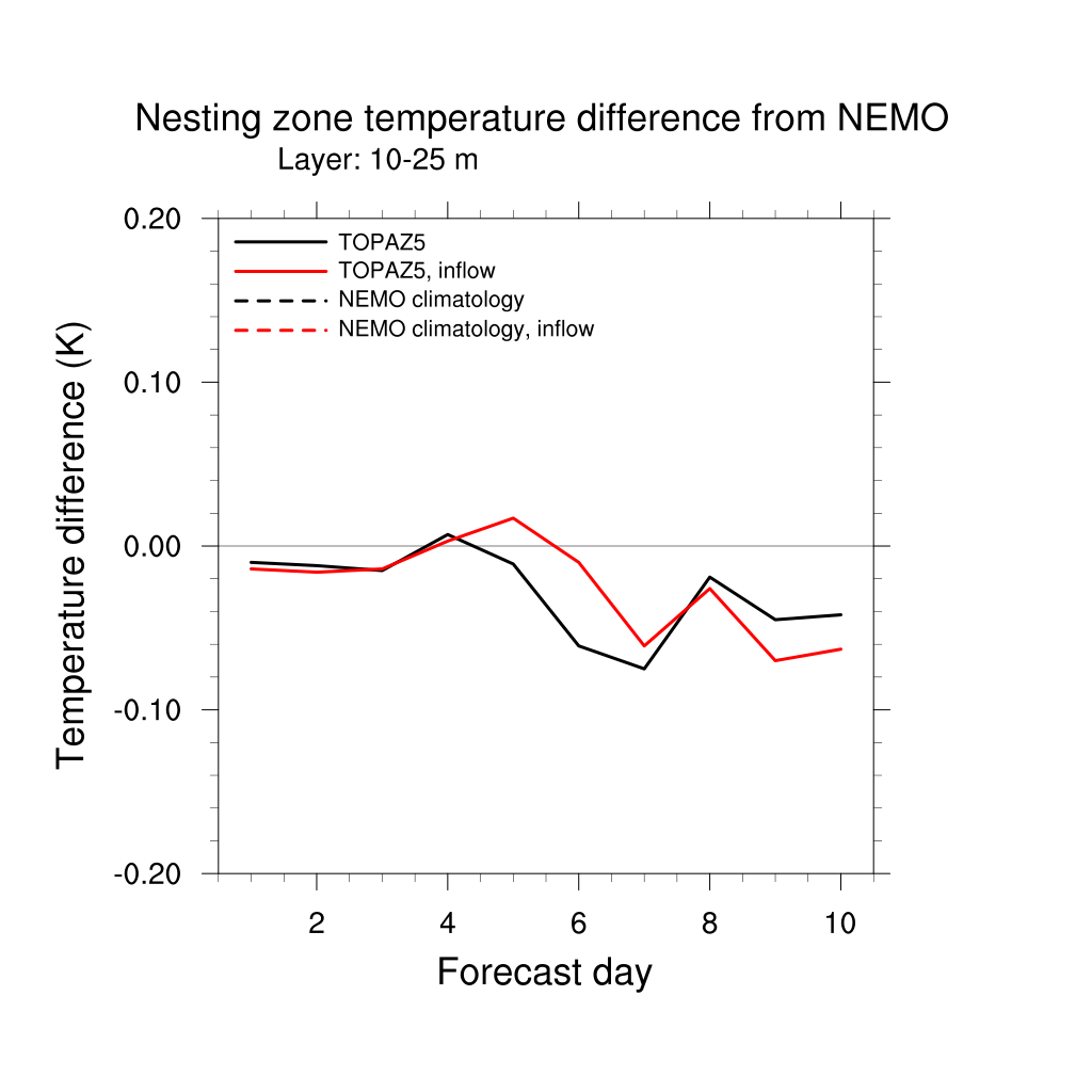 Temperature differences from NEMO forecast, by nesting depth