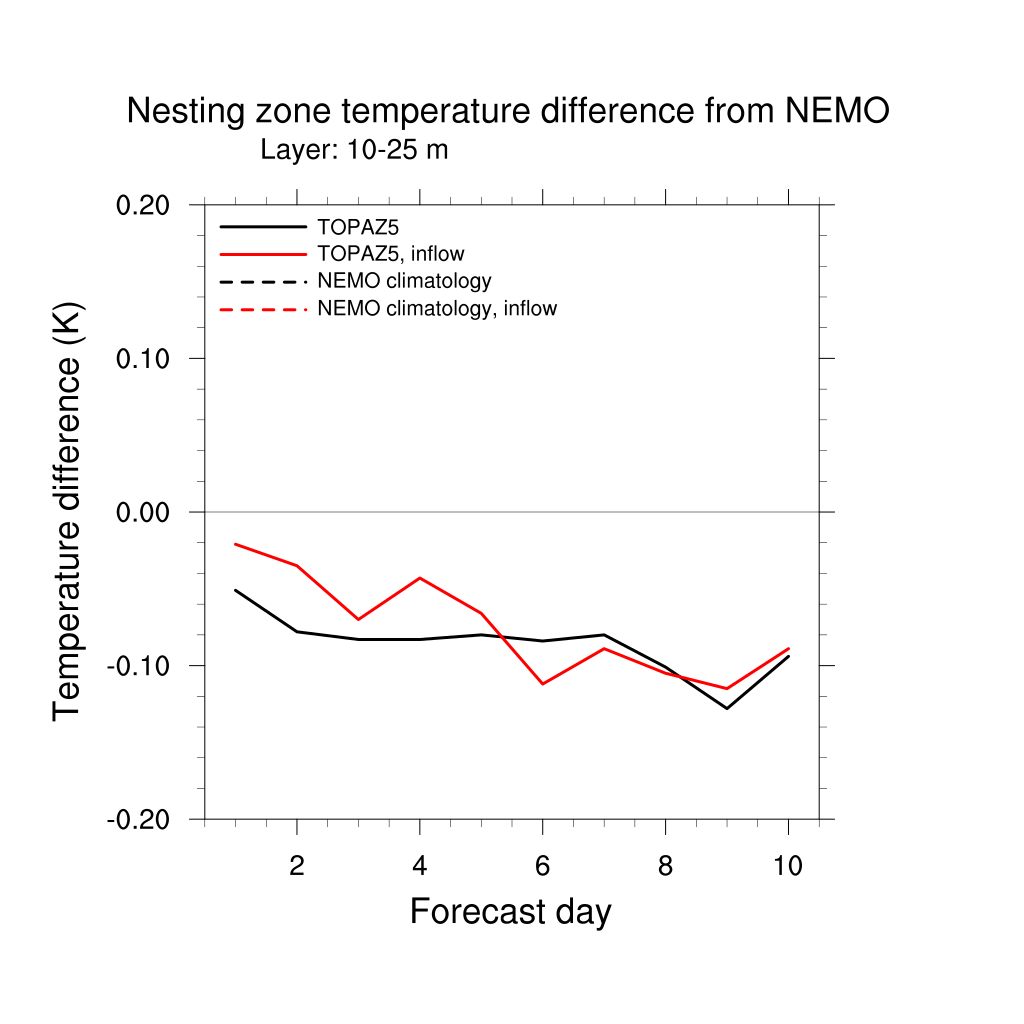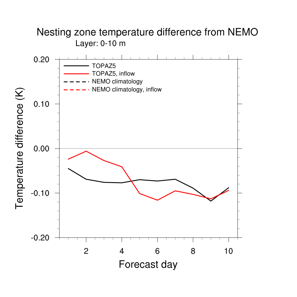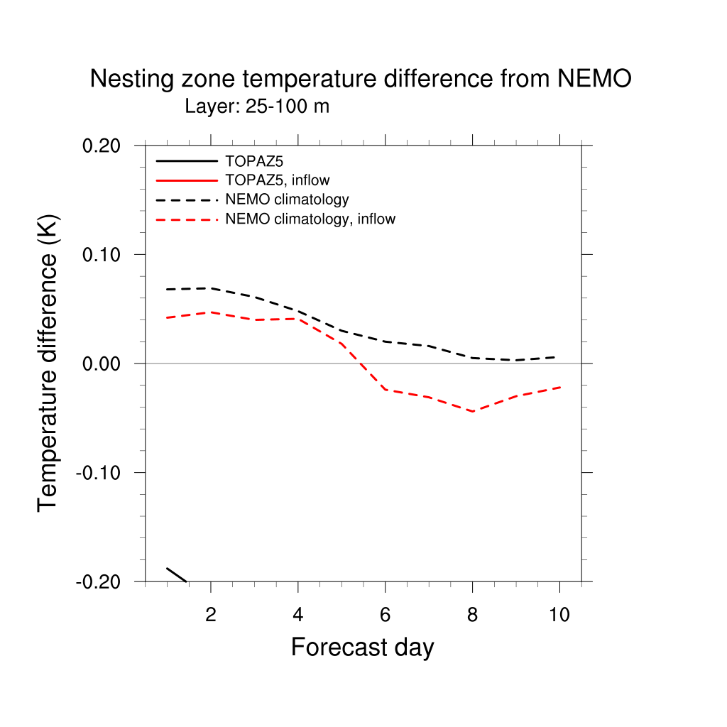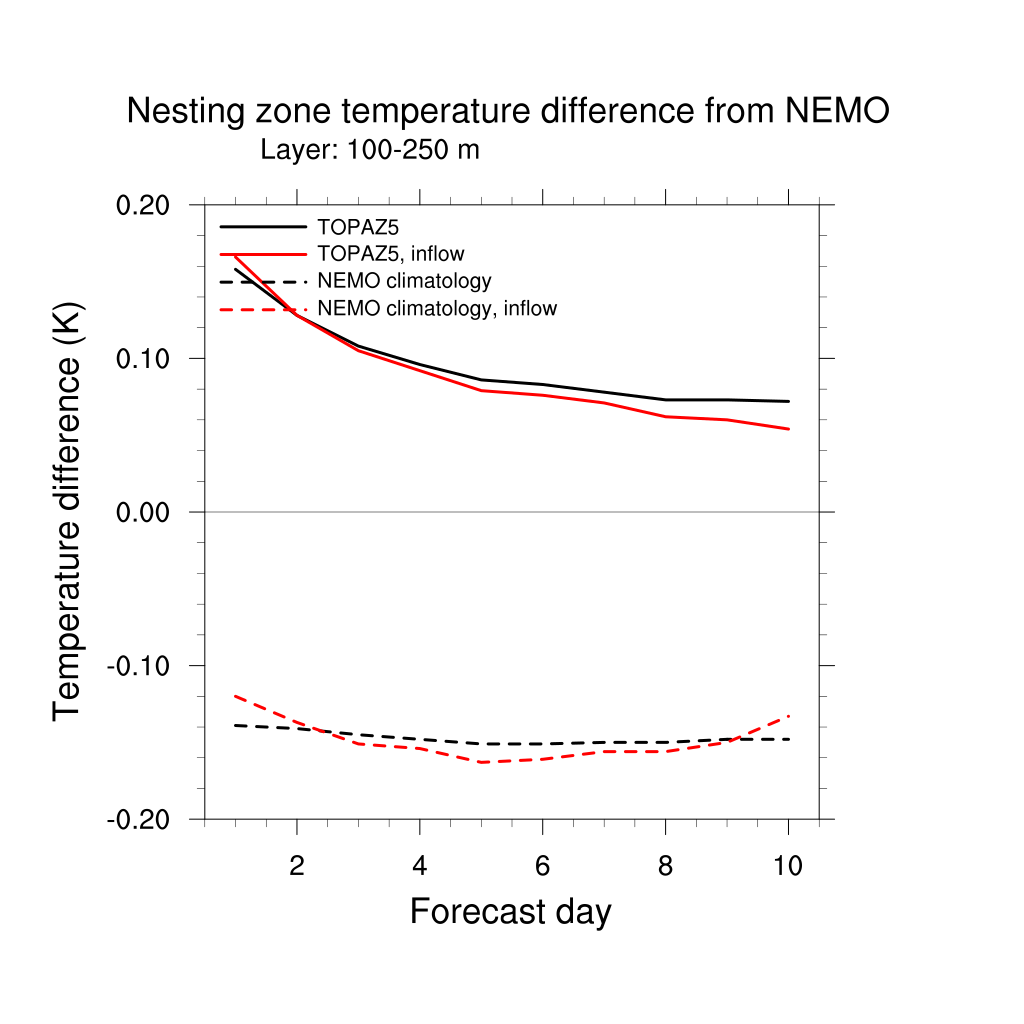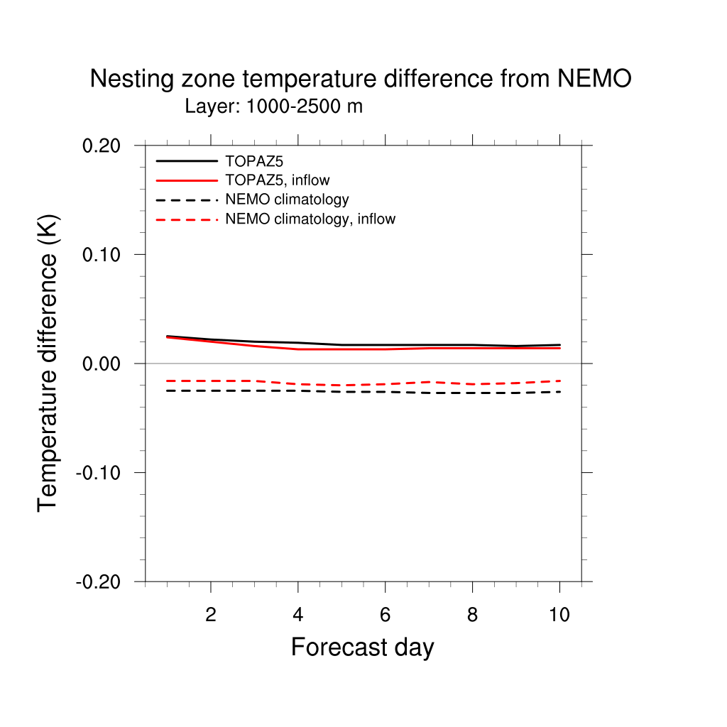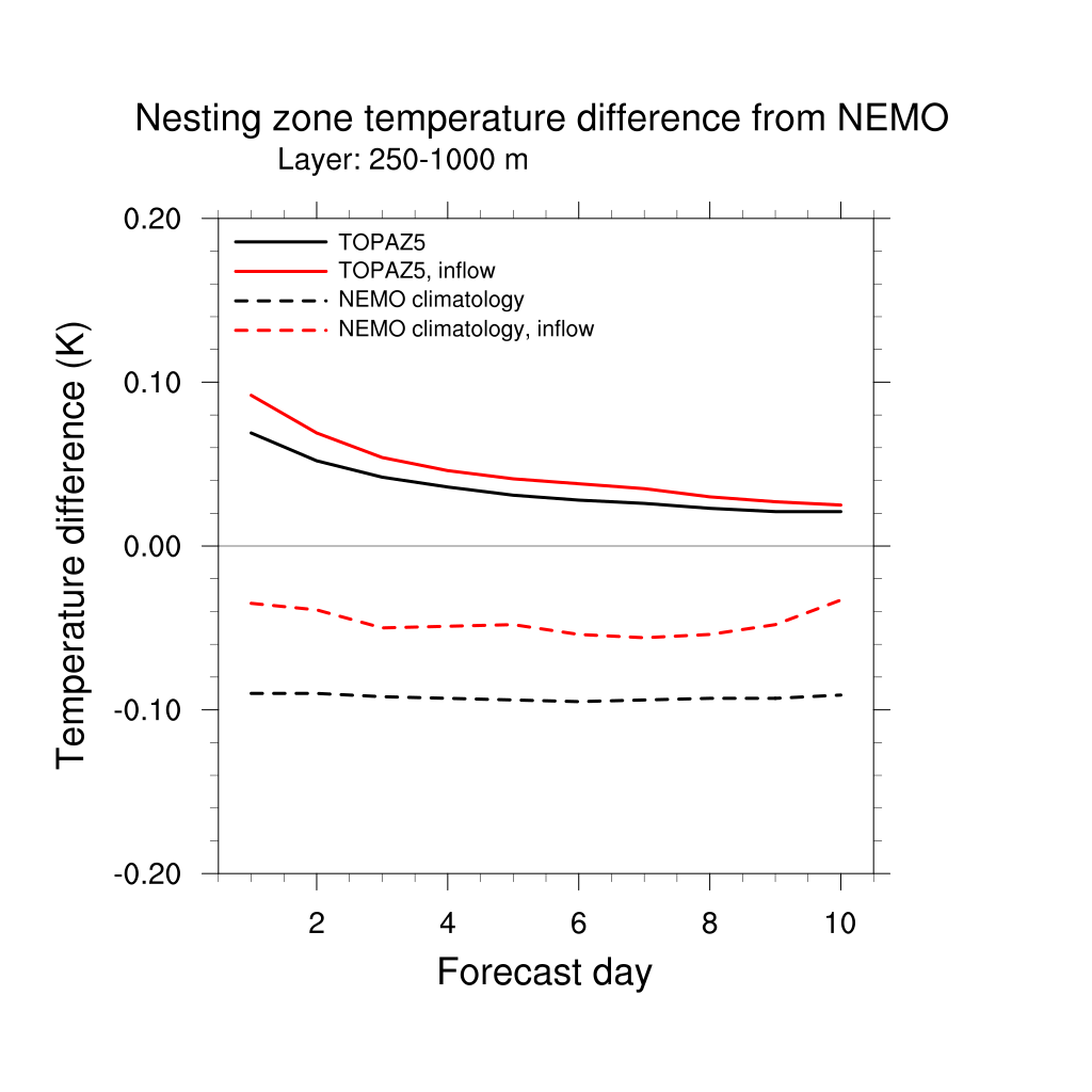 Temperature differences from NEMO forecast, by nesting depth