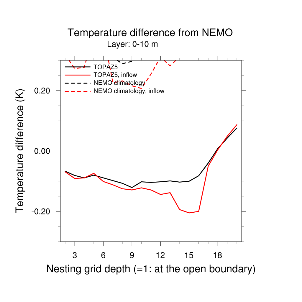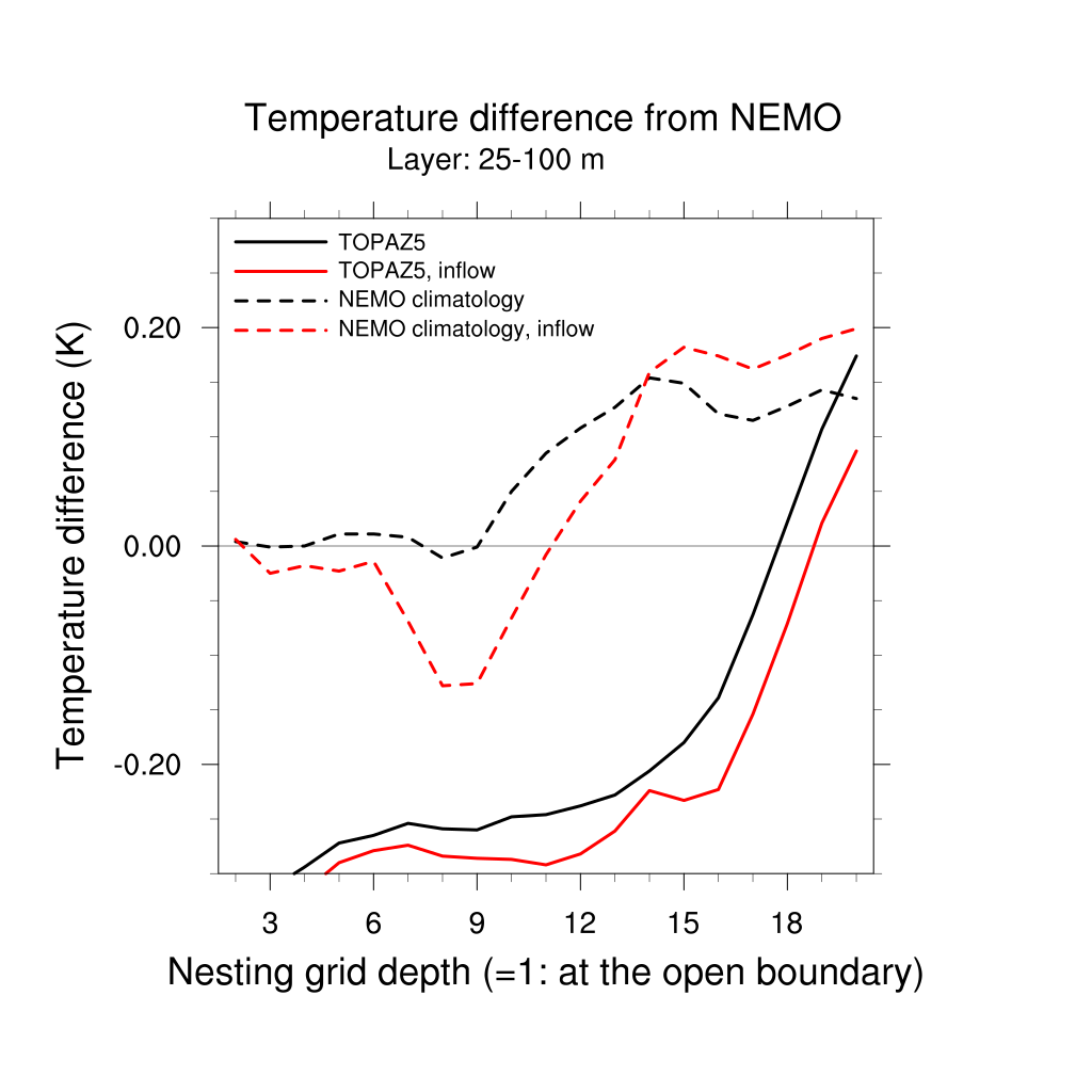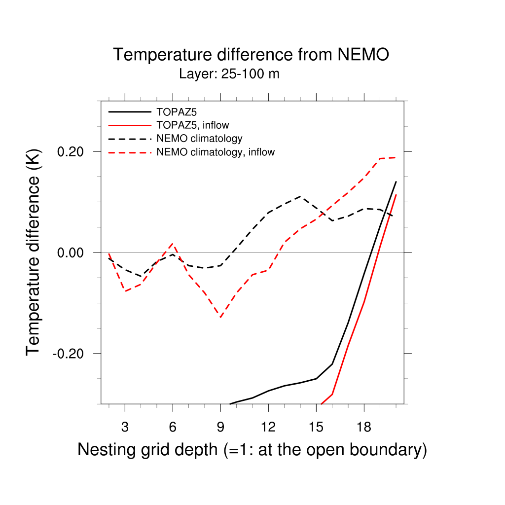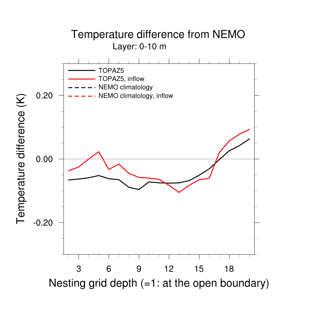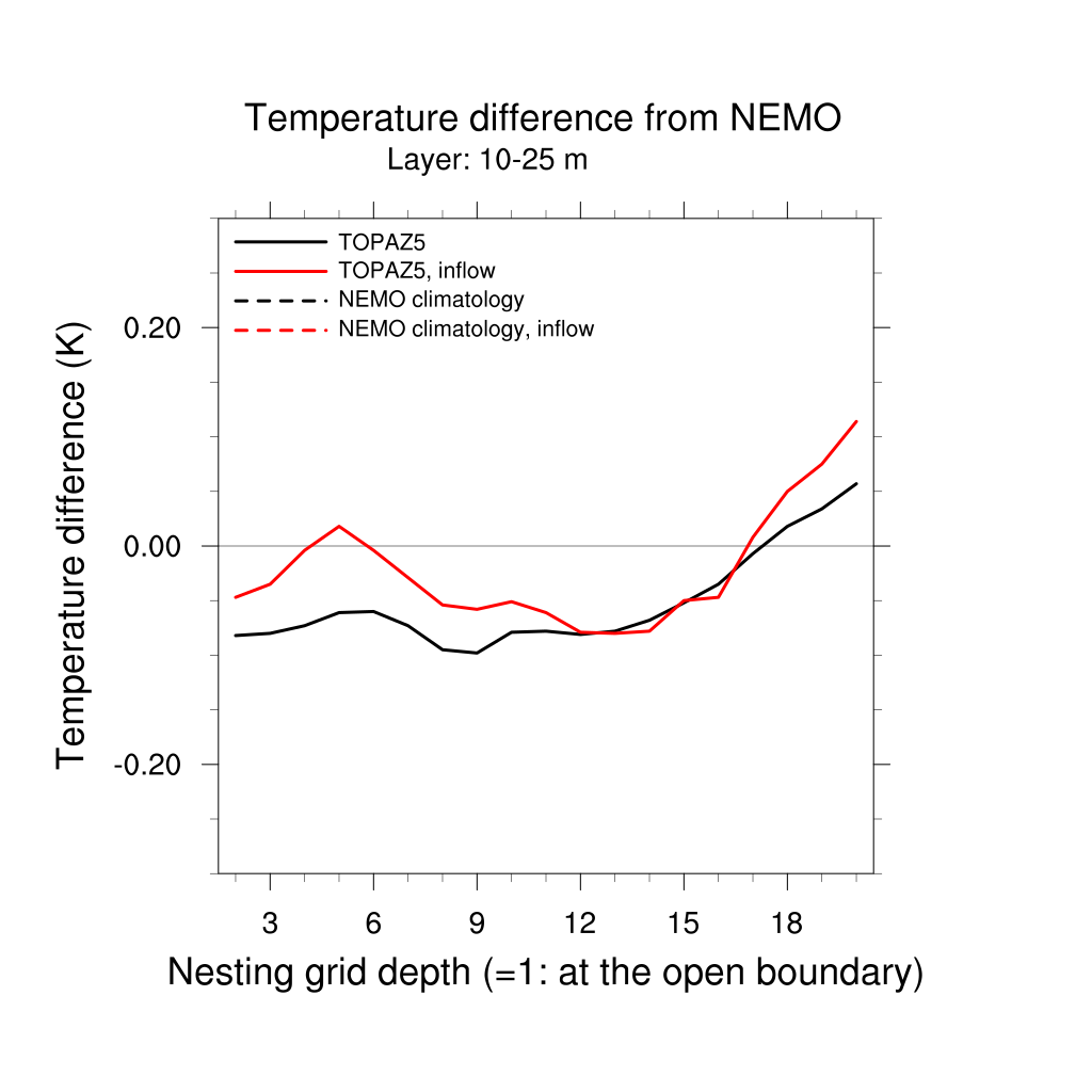 Temperature differences from NEMO forecast, by nesting depth