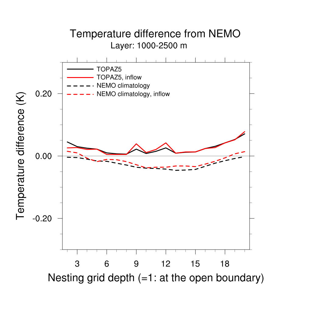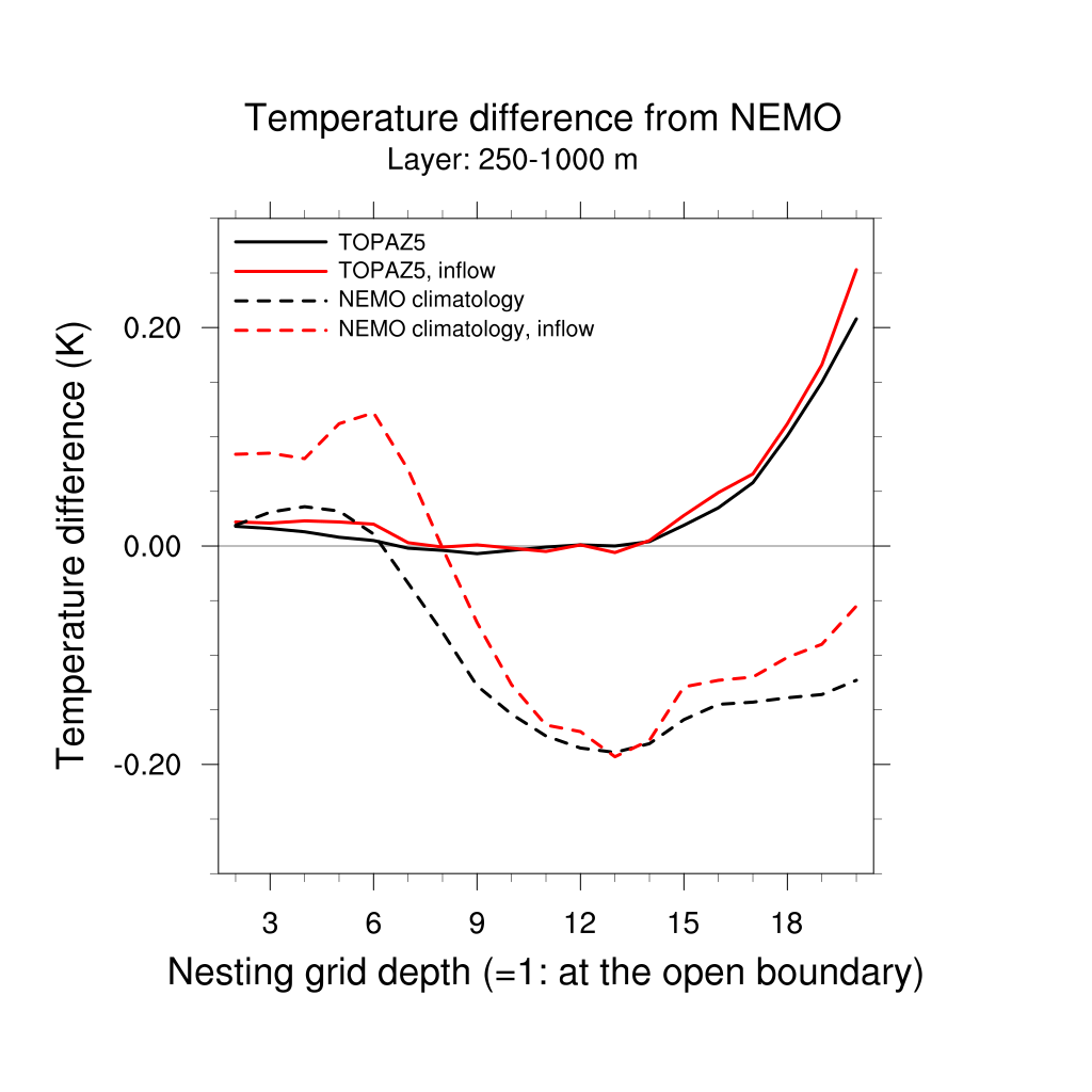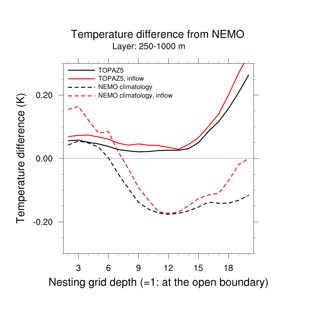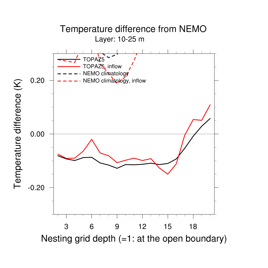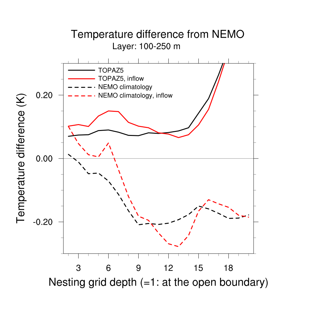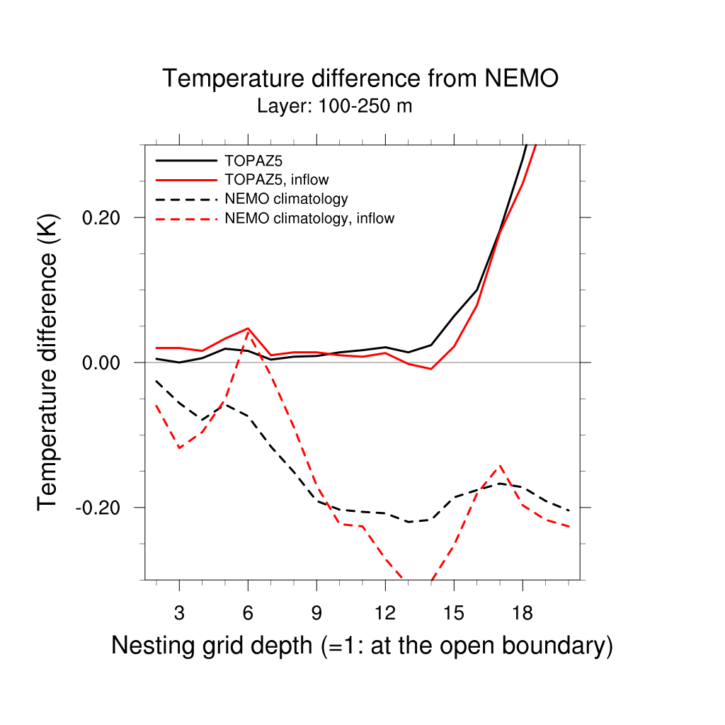 Temperature differences from NEMO forecast, by nesting depth