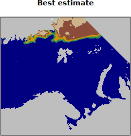 Very close drift ice, Fast ice (concentration range: 9/10-10/10) |