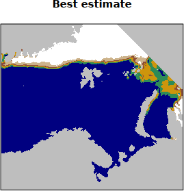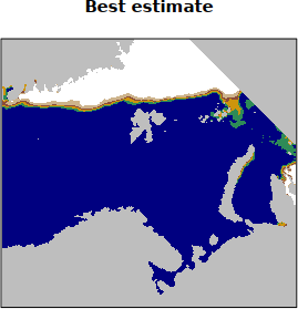 Very close drift ice, Fast ice (concentration range: 9/10-10/10) |