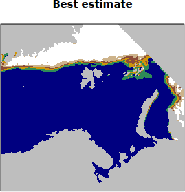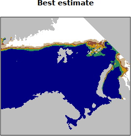 Very close drift ice, Fast ice (concentration range: 9/10-10/10) |