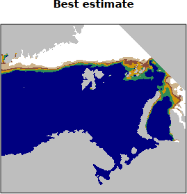 Very close drift ice, Fast ice (concentration range: 9/10-10/10) |