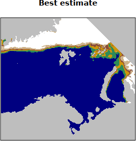 Very close drift ice, Fast ice (concentration range: 9/10-10/10) |