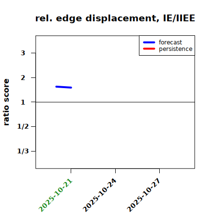 | Observations in blue, model forecast in grey, persistence in brown | |