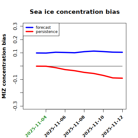 | Observations in blue, model forecast in grey, persistence in brown | |