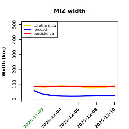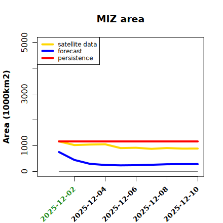 | Observations in blue, model forecast in grey, persistence in brown | |